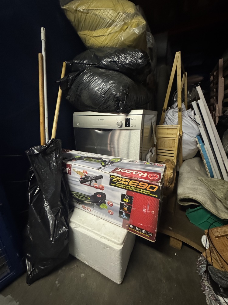 • Assorted sealed boxes and black bags containing household goods and linen.
