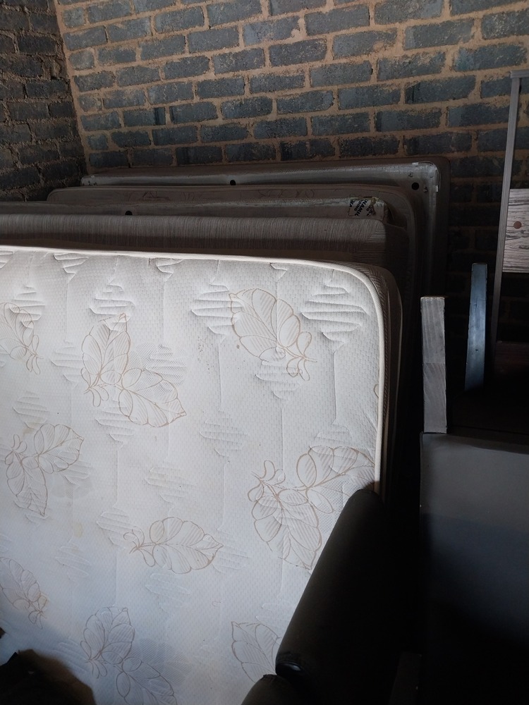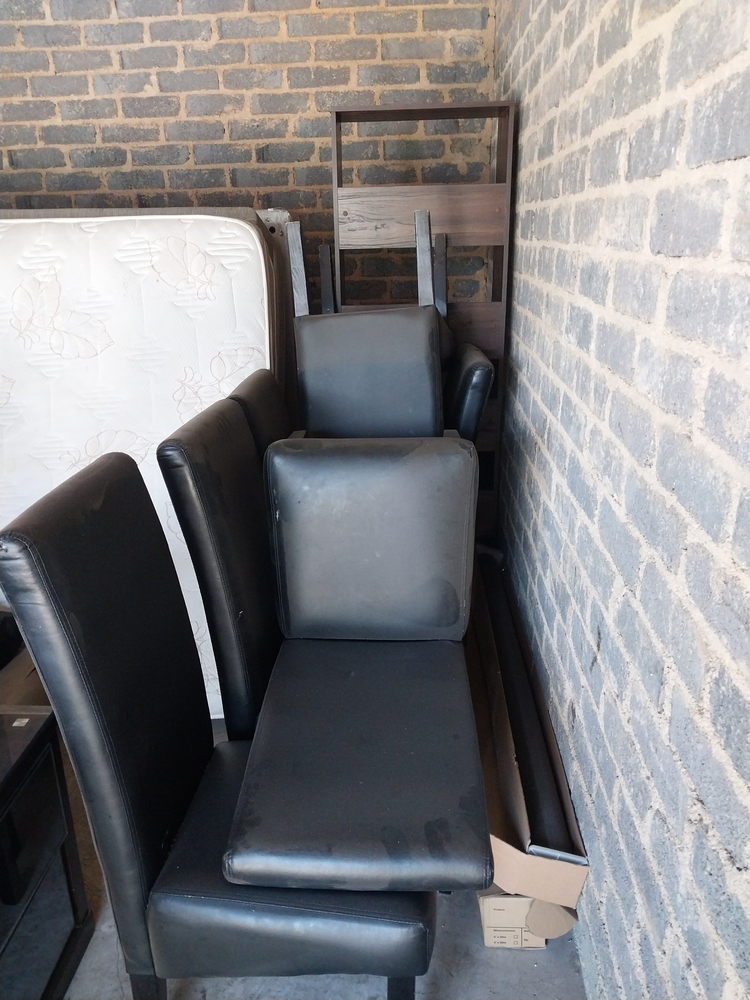 Household Items - 2 x Double beds, TV stand/ wall cabinets, Black Leather dining room chair, Defy Microwave, Pram, Baby feeding chair
