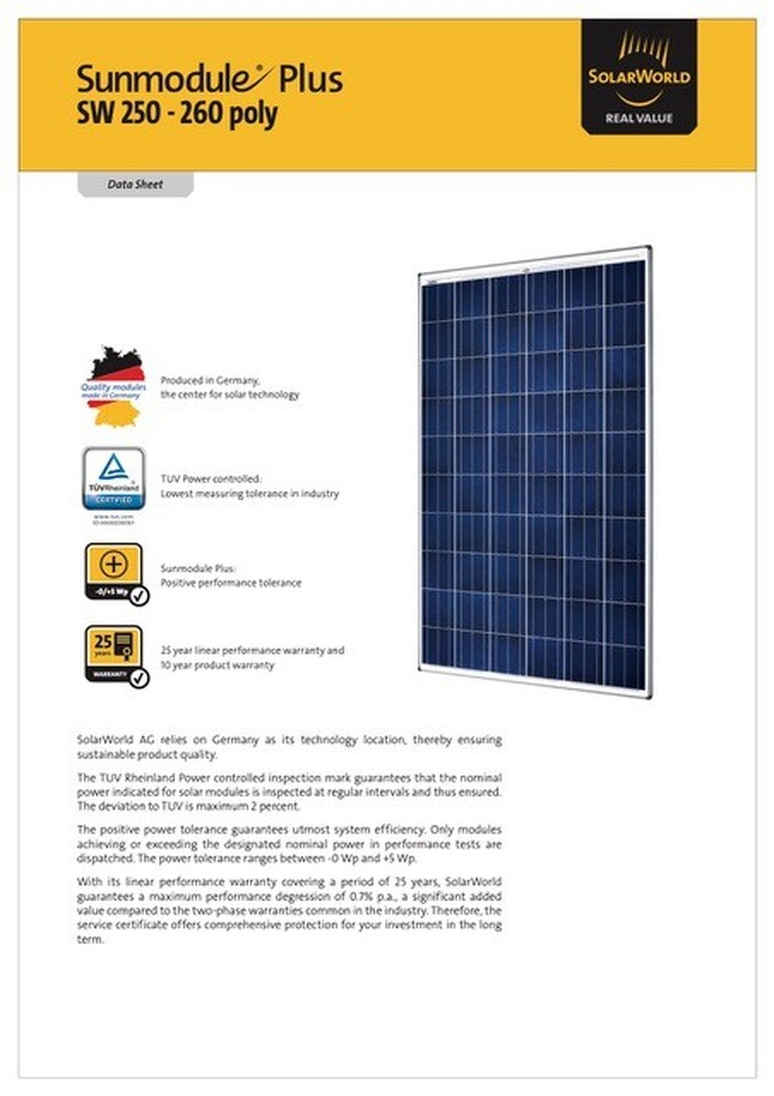 · SolarWorld Sunmodule SW250–260 Poly